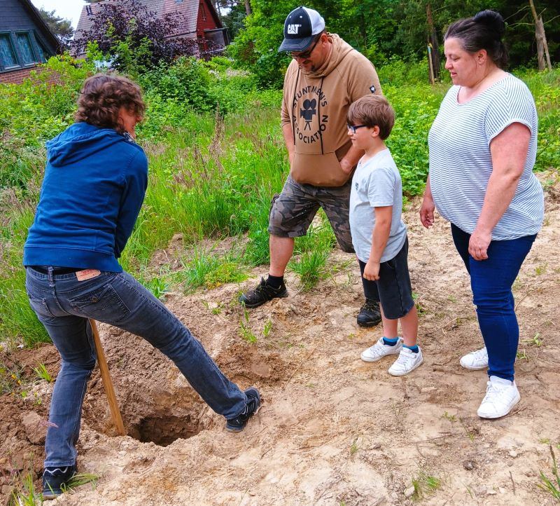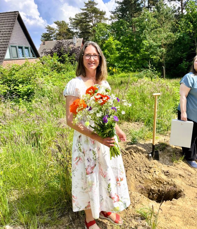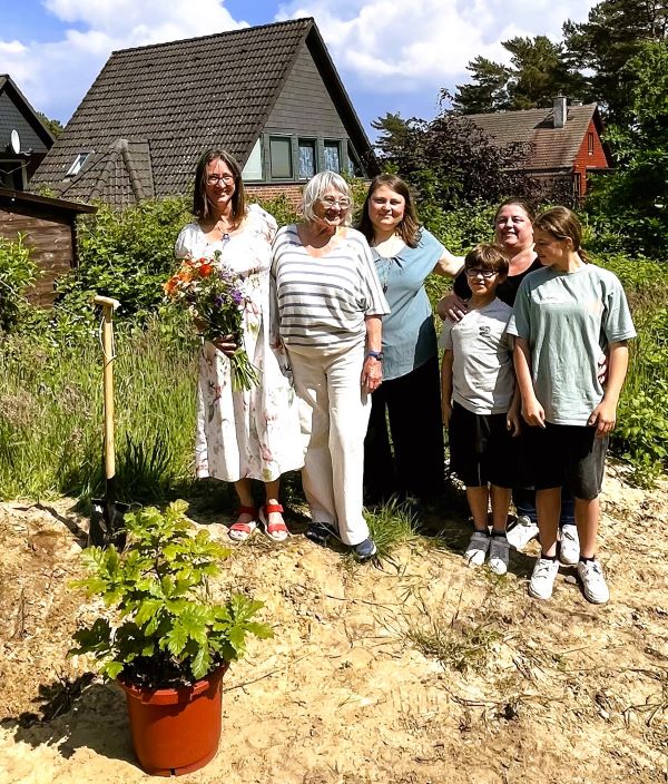 Auf dem ehemaligen Kartoffelacker von Minna Busch, der letzten aktiven Bäuserin der Familie aus Stubbenfelde, fand am 25.05.2024 die symbolische Grundsteinlegung für die Dauerwohnanlage To Huus mit 11 geplanten Wohneinheiten und vier Gästewohnungen mit rd. 1.000qm Wohnfläche in Loddin im Minna-Busch-Weg 1-3 statt.
