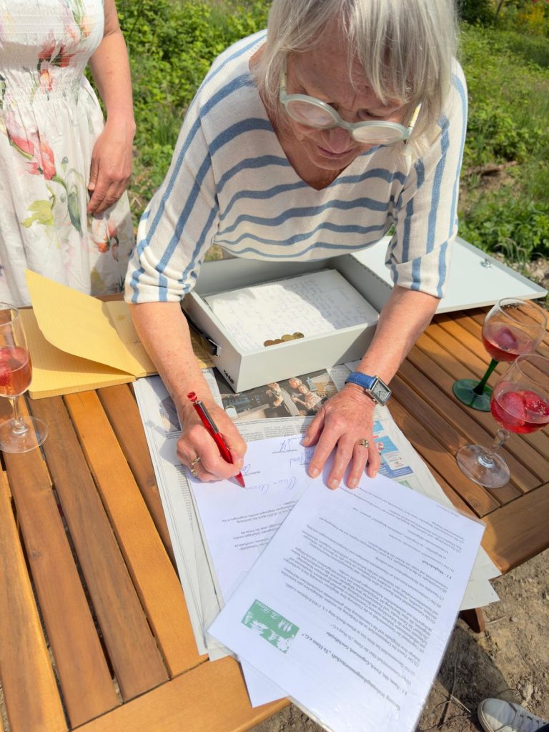 Viele Nachbarn, Pächter, lokale Unternehmer (Fischerei Hengstler, mare Pflege GmbH, Architektur Büro Dreischmeier, elektro Jakubowski, etc.), langjährige Freunde, Interessierte und Mitglieder der Wohnungsbaugenossenschaft To Huus eG i.G. sind erschienen, um mit der Gründungsfamilie als Zeugen beim Verschluss der Zeitkapsel dabei zu sein.